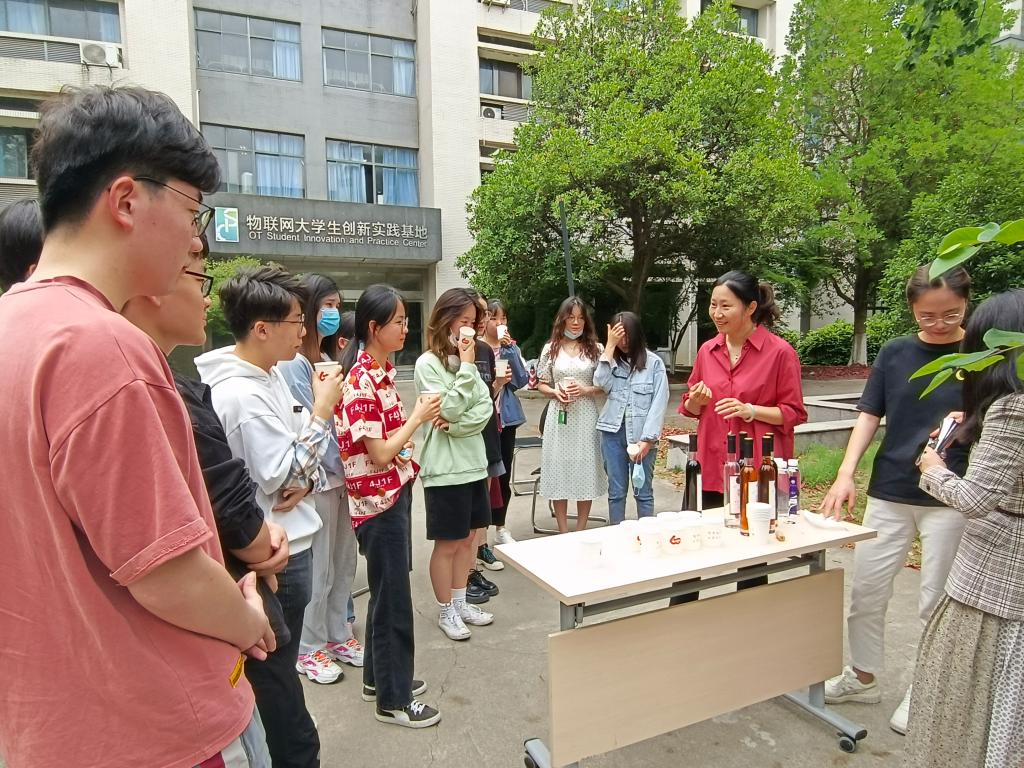 “这个是用近红外光谱分析技术研制的冰酒,曾获得国际银奖。”栾小丽精心准备了其科研成果转化的产品,带领学生们在品尝中感受科学技术的魅力。“原来自动化专业不是就跟设备打交道,还能这么玩!”听完栾小丽的讲解,品着美酒的学生们连连发出感叹。陶洪峰从控制论的角度,深入浅出地阐述了“闭环看世界”与“开环看世界”的区别,勉励学生们在不断变化的世界和要求中,积极调整自己,从而更快更好地适应新环境。樊启高围绕电气学科总体现状和发展前景,详细介绍了其团队在电机控制以及新能源等领域的科研项目,让学生们近距离接触前沿科技成果。