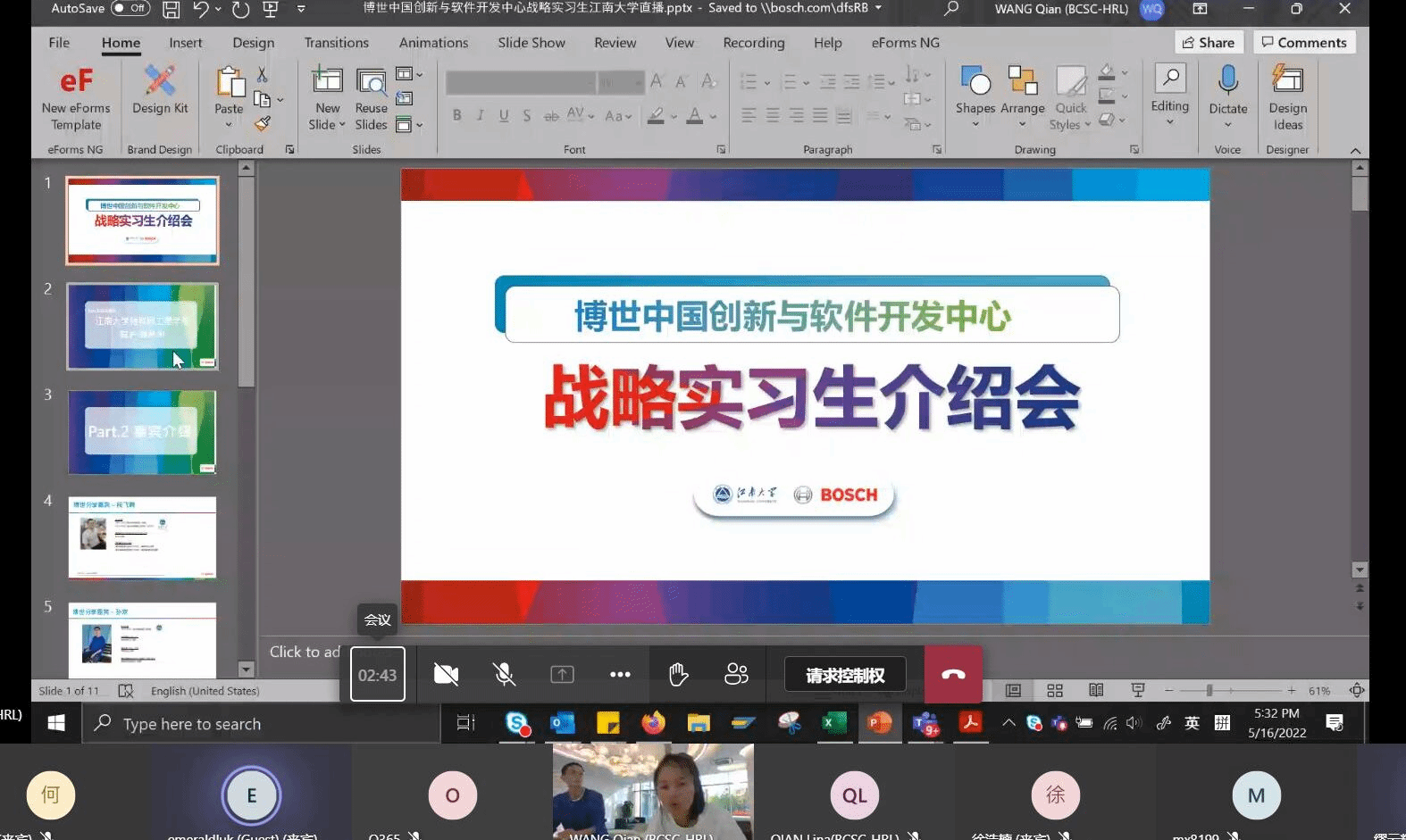 校友,以自身实际经历介绍在博世工作的体悟,为同学们提出就业建议,鼓励同学们积极应聘本次战略实习生岗位。