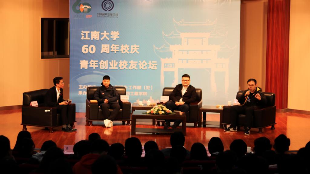 三位创业校友围绕“祝福甲子江南,共话创业时代”的主题与在校学子分享创业点滴。王不凡谈到“预见”的重要性,同时鼓励大家要敢为人先,敢于打破传统,他在现今动物型儿童智能机器人主导的市场中,另辟蹊径,成功打造出独特且受儿童喜爱模型为智伴机器人。李可佳指出大学期间的无用之用成就了他创业的梦想,他在校期间创办《蠡湖》杂志,广交朋友,拓展人脉;他在追求学术中培养出严密的思维;他善于观察,热爱思考,形成自己的独特见解。他告诫全体学弟学妹,要珍惜在校青春年华,学校里一切看似无用的东西都会为你今后发展贡献有用的力量。魏佳星表示,创业的关键在于寻找“风口”,不仅要对固有事物进行突破,更要对“物物相连”趋势存敏锐嗅觉,不回避时代重点及难点。他戏称自己是被“坑”出来创业的,能够坚持下来,在于不断地遇到问题、解决问题,鼓励大家不要害怕失败。