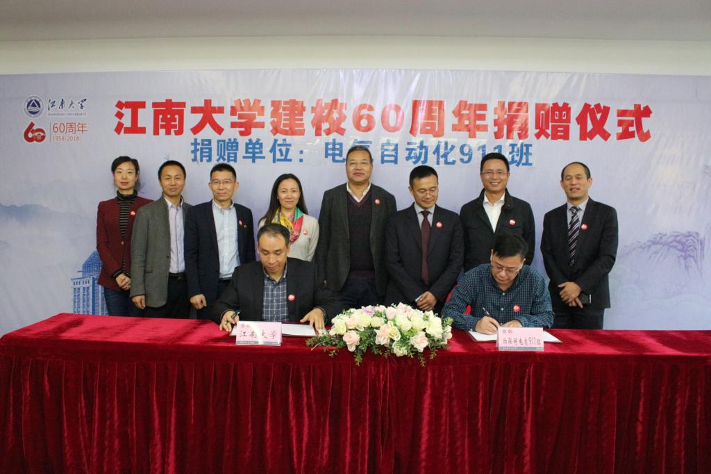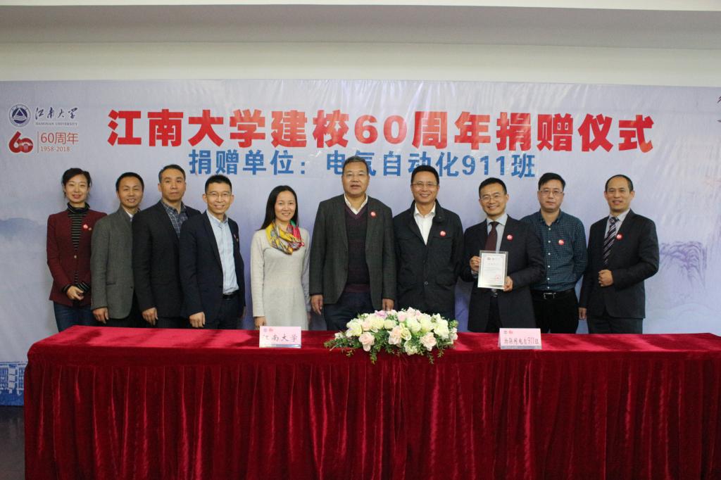 电气自动化911班捐赠仪式在文浩馆105举行。电气自动化911班代表——宁波睿驰塑业有限公司总经理郑成坚、上海祥树欧茂机电设备有限公司总经理赵树才、平安银行平安信用卡中心副总裁俞如忠;93级校友代表、上海锡明光电有限公司总经理王振宇,以及中文无码