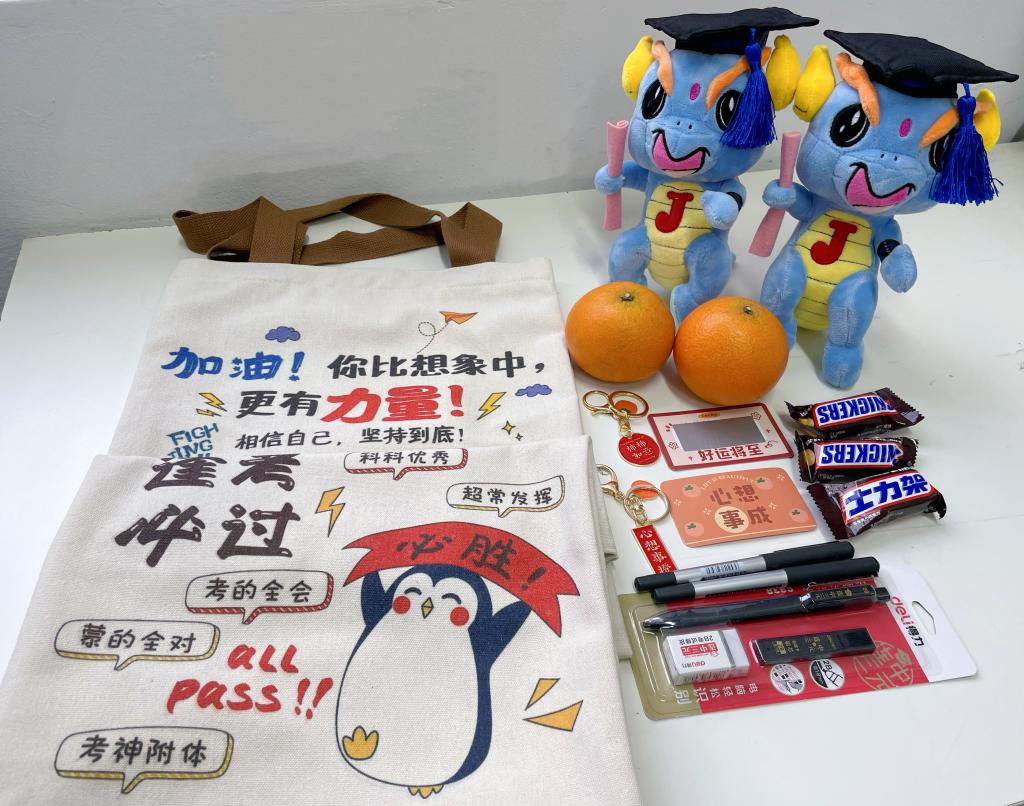 活动过半,学院党政领导同与会班主任、辅导员为考研学生代表送上学院精心准备的考研加油包。“励志加油包”祝福同学们都能就此扬“帆”起航,心想事成,一战成硕;“文具助力包”希望同学们在考场上妙笔生花,金榜题名;“能量补给包”期待同学们暖冬心事成,幸运伴你行,“橙”功上岸;“幸运锦鲤包”带着班主任、辅导员和保研同学的满满祝福,祝愿同学们锦鲤附体,考的全会,逢考必过。