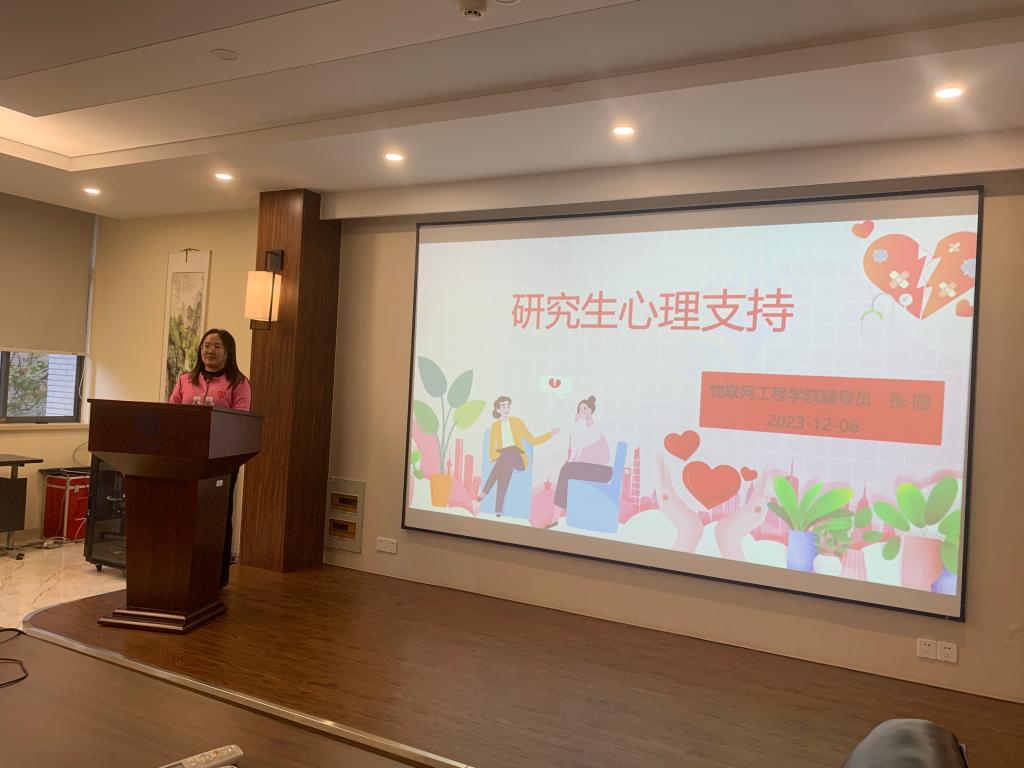 梁峻阁带领大家作“思政教育和师德师风建设”专题学习。师德师风是评价教师的第一标准,教师应进一步提高对师德师风的认识,把教书育人和自我修养相结合,做到以德立身、以德立学、以德施教。辅导员张圆以“研究生心理支持工作”为题,从了解情绪概念,识别心理问题,如何促进师生交流,为学生提供积极心理支持等方面,结合实例进行讲解,参会导师都表示受益匪浅。
