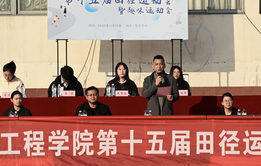 第十五届田径运动会暨趣味运动会在体育中心举行。学院党委书记张华,副院长王子赟,分团委书记洪筱,以及辅导员、班主任等出席开幕式。