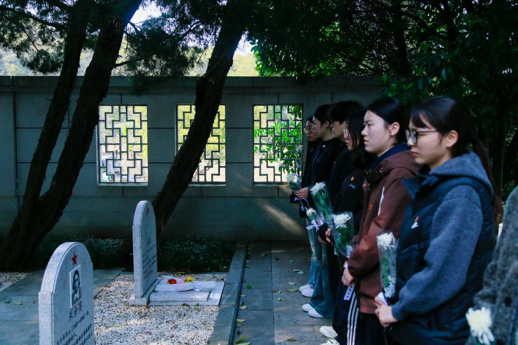 师生们在烈士墓区瞻仰沉思
