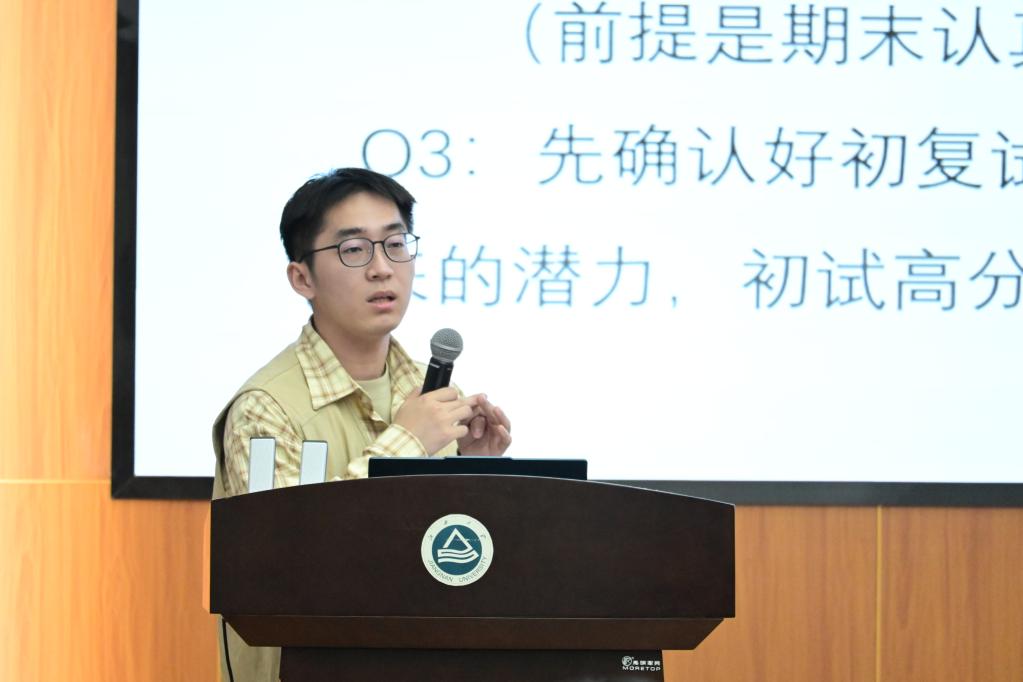 张吴烨同学考入南京航空航天大学控制工程专业。他结合自身兼顾考研备考与学生工作的实战经验,引导大家理性权衡考研得失。他重点分享了科学规划时间、精准把握节奏的方法,包括高效利用碎片时间、划分任务优先级以及平衡学习与工作的协同策略,为身兼学生工作的考研学子提供了可借鉴的方案。