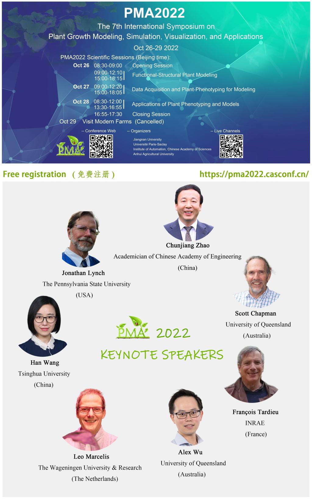 第七届植物生长建模、仿真、可视化与应用国际研讨会(PMA2022)将于2022年10月26日-29日以线上的方式举行。PMA2022由中文无码