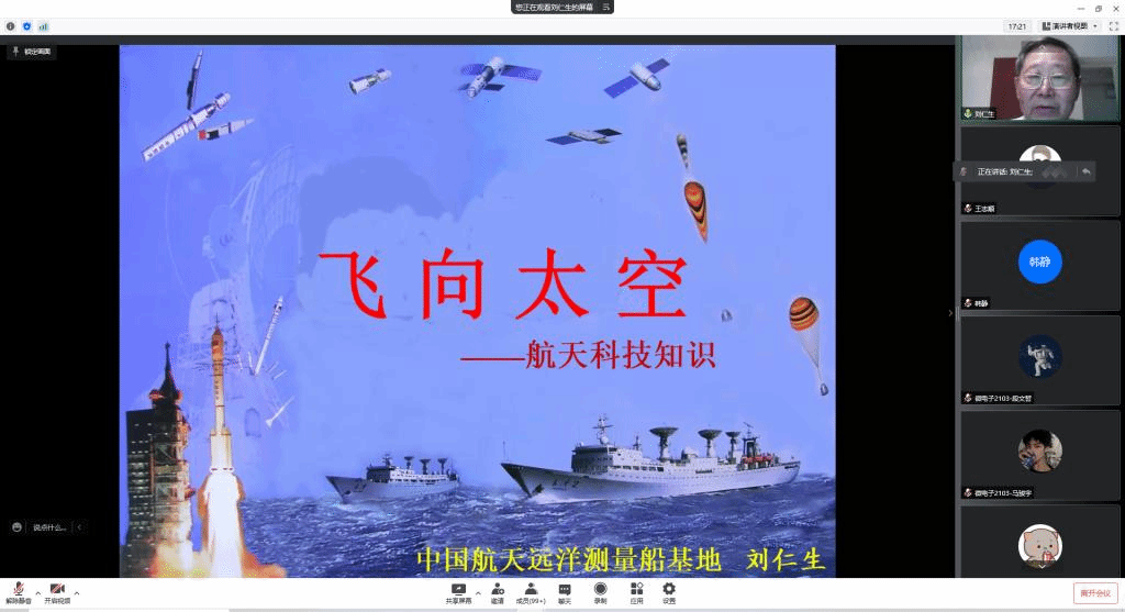 党委在这个特殊的日子里,特邀原中国卫星海上测控部副主任兼总工程师刘仁生为师生讲授中国航天日主题党课。学院教师代表、全国党建工作样板支部大学生创新实践基地党支部党员、分党校第四十三期党员发展对象培训班学员、第十五期入党积极分子培训班学员等近200余人在腾讯会议上聆听党课。活动由学院党委副书记、副院长孔丽丹主持。