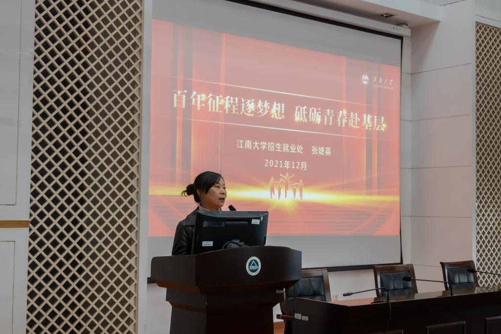 “身逢盛世,当不负盛世;生逢其时,当奋斗其时。”张婕英在为同学们解读基层就业政策时感慨道。她以导向基层就业“是什么”“为什么”“谁来干”三个问题为切入,结合我校近年来涌现基层就业的学子楷模,详细分析了“选调生”“苏北计划”“西部计划”“三支一扶”“特岗教师”等基层就业和服务项目;从国家需要、社会倡导、高校使命、青年价值四个维度,回答了为什么要到基层去就业;以“当代青年的历史使命”解答了由谁来干基层工作。