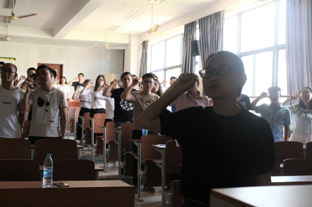 毕业生党员承诺书》,并在孙小芳老师的领誓下,重温了入党誓词。铿锵有力的承诺与誓词,是党员对母校的一份郑重承诺,承诺在即将离校之际,各位党员依旧以身作则,站好最后一班岗。在以后的学习、工作生涯中,肩负起自己肩膀上的国家和民族责任,为中华民族的复兴贡献自己的青春!
