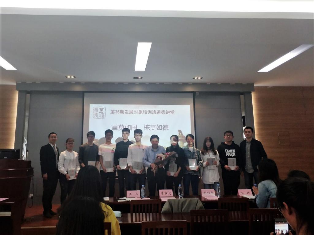 第35期学生发展对象培训班举办了以“重莫如国,栋莫如德”为主题的道德讲堂。出席本次活动的嘉宾有原无锡轻工大学党委副书记李宗元,中文无码