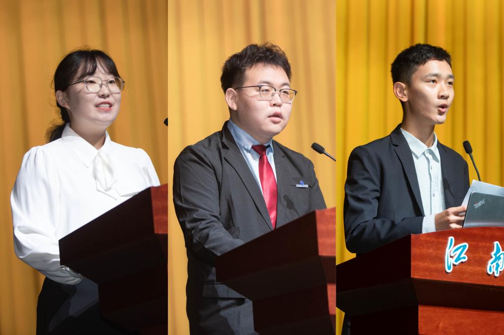 电子科学与技术2021级硕士研究生曹喜悦作为在校学生代表发言。她以“学在物联”为主题,从科研、科创与实践三个角度,分享了她的六年江南时光,并希望大家坚持自己的热爱与追求,追寻自己的美好与梦想,将有限的青春岁月碰撞出无限的青春活力。新生代表发言环节,控制科学与工程2023级硕士研究生霍雷霆分享了自己在云南山区一年的支教之旅,鼓励同学们要像锋利的工具一样,去雕刻出更加精致的自己,把困难化作机遇,将挑战视为担当,勇担时代重任,成为更好的自己!物联网工程专业本科新生曲天一呼吁大家要以一颗赤子之心面对世界,以一种不惧挑战的心态迎接未来,平静、充实、有意义地度过无限可能的物联时光,让自己的青春光彩隽永绵长!