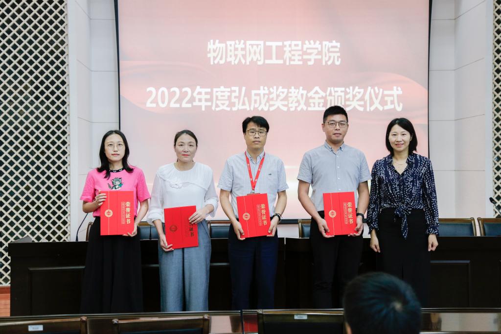 弘成奖教金是由弘成科技发展有限公司设立,旨在奖励为学院发展建设做出重要贡献或取得突破性、标志性成果的个人和集体,分别设有党建创新奖、科技突破奖、教育教学奖、管理服务奖、校园文体奖等奖项。2022年度“弘成奖教金”共设一等奖4项、二等奖8项、三等奖12项,其中,一等奖分别授予大学生创新实践基地党支部(入选全国党建样板支部)、“物联网技术应用”教育部工程研究中心(通过评估并获良好等级)、许德智老师(荣获国家优秀青年科学基金)和院乒乓球队(荣获中文无码