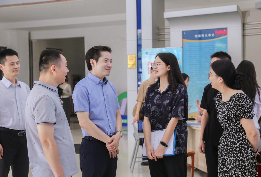 31日上午,校党委常委、副校长马鑫,研究生院领导陈周、潘如如等一行莅临学院迎新点,学院党委书记耿向阳介绍了研究生迎新工作情况。马鑫与研究生新生进行了亲切交谈,勉励他们要坚持科研初心,读研期间要有诚挚的理想、有明确的目标、有可行的计划,把自己锻造成为有责任和担当、有作为和成就的新时代研究生。
