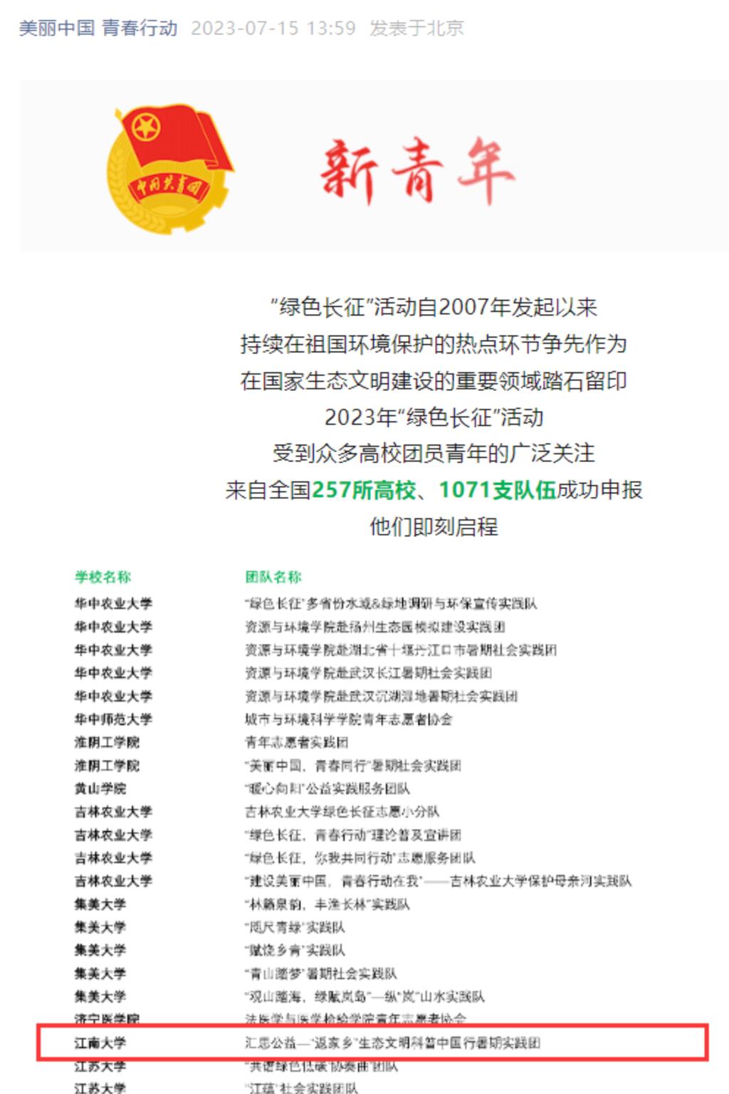 汇思公益团组建的“汇思公益——返家乡生态文明科普中国行暑期实践团”成功入选2023年乡村振兴“笃行计划”专项行动全国示范性团队和“美丽中国·青春行动”2023年青少年绿色长征科考实践活动,两个专项活动均为中文无码