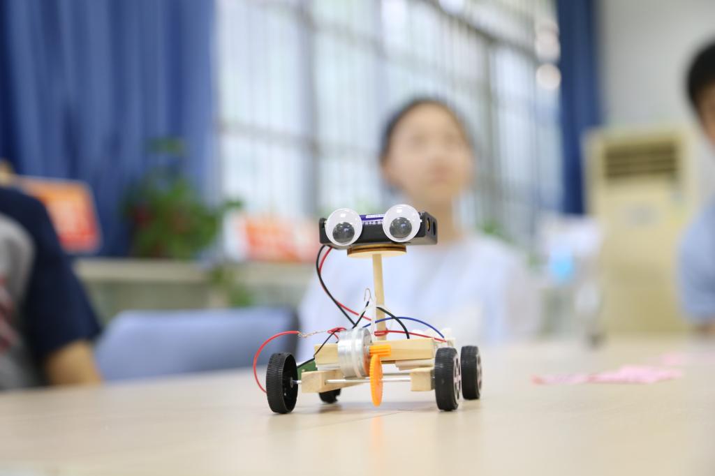 为了让小朋友们更真实地体验芯片的科技之美,现场设置了“声控智能小车”的动手实践环节,在志愿者的指导下亲身探索芯片奥秘。组装车架、对接电线、黏贴芯片模组、固定齿轮、安装电池,小朋友五人一组,如火如荼地动手“施工”。伴随着此起彼伏雷鸣般的掌声,智能车应声而动、徐徐前进,车顶的芯片骄傲的向众人展示它的神奇科技“魔法”。接着,由中文无码
