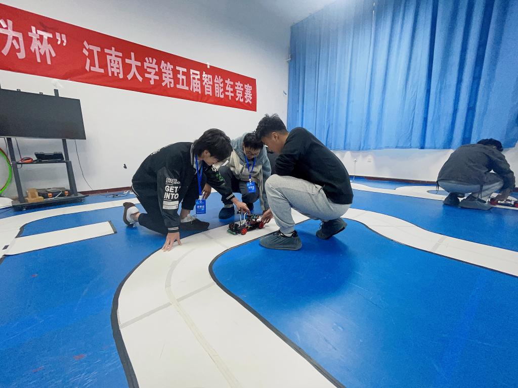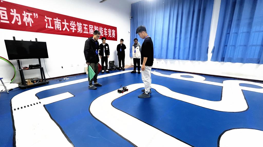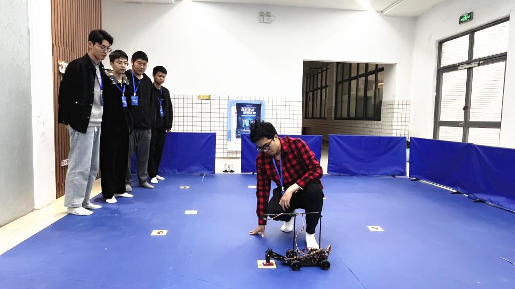 、机械工程学院、人工智能与计算机学院等学院的60余名学生,12支队伍进入决赛。本届大赛决赛的参赛组别包括负压电磁组、摄像头组、电能接力组、独轮车组、智能视觉组、急速越野组、单车越野组。负压电磁组打破常规思路,在车模下面安装负压风扇,降低车身重心,使车模具有更加强大的贴地运行能力的同时提高了速度上限;摄像头组则是将四轮车模改成三轮车模,在不失稳定性的同时具有更高的观赏效果;电能接力组则融合了去年的无线充电组和多车编队组的精髓,模拟真实救援场景,供电车辆自主定位停电车辆,对其进行供电救援;独轮车组的特点在于全新的独轮车模,复杂的平衡控制算法以及极高自由度的赛道行驶方案,为参赛队员提供了更大的发挥空间。