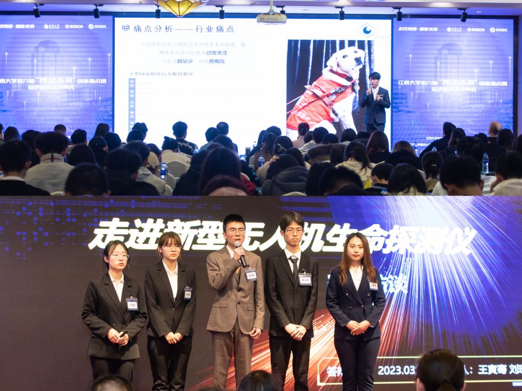 、食品学院、人工智能与计算机学院、机械工程学院、纺织科学与工程学院、设计学院、商学院、人文学院、理学院等80支参赛团队500余名学生参与,大赛组织方通过选题初筛、初赛、复活赛、决赛等环节确定最终获奖名单。整个赛程注重过程指导,先后举办竞赛发布会、创享论坛、创e加速营、寒假社会调研、导师面对面等,一系列的培训和指导为提升学生创新思维、完善项目方案提供了坚实保障。各项双创活动精彩纷呈、亮点频出、成果丰硕,营造了浓厚的热爱科学、鼓励创新、探索未知的创新创业氛围。