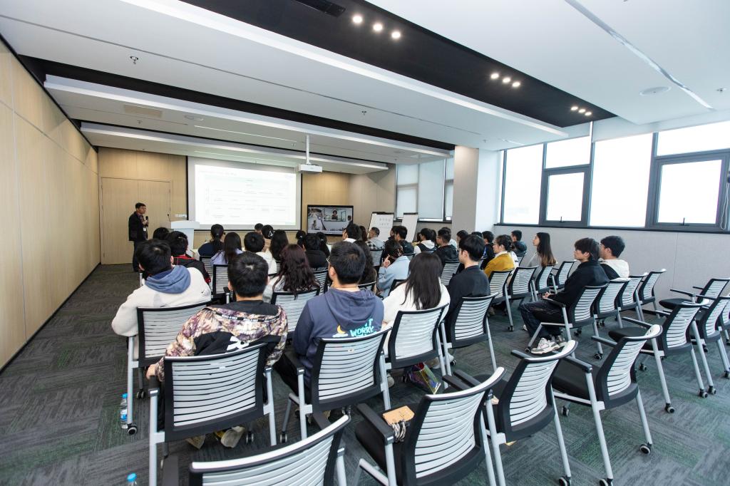 活动最后,就职英飞凌的校友秦瑶、曾婷两位工程师为学弟学妹们作经验分享。秦瑶结合入职英飞凌4年的工作经历,讲述了自己如何从职场小白蜕变为高级工程师的成长故事,鼓励同学们珍惜机遇、学无止境、永攀高峰。曾婷围绕工作体验、系统培训、个人展望三个模块,分享了在工作岗位上边做边学的心得体会,欢迎更多的物联学子加入英飞凌的大家庭中。