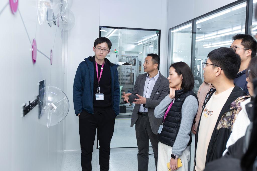 师生一行在企业方的带领下走进英飞凌新厂区,参观了最具代表性的技术产品,包括晶圆技术、射频晶体管、中功率放大器等。在工程师的介绍中,同学们深入地了解芯片的生产工艺和流程,特别是芯片后道封装测试方面的技术知识。同学们认真聆听的同时踊跃提问,工程师就“芯片在制作中出现问题如何进行调试”“芯片制造过程中为什么用铝丝,而不是金丝或铜丝”等问题进行了详细的解答。同学们深切地感受到肩上的责任与使命,在智能化的未来,芯片与半导体材料行业的发展前景很广阔,人才是第一资源,创新是第一动力。