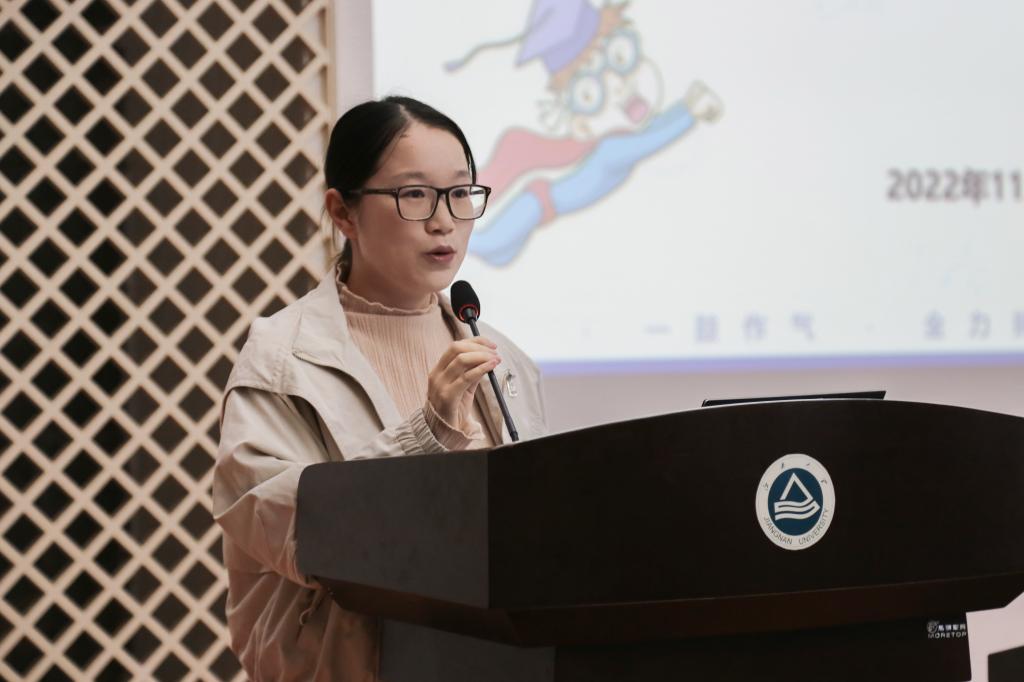 随后,班主任代表向全体考研学子送上祝福和关切。李诗炜提到,希望同学们在关键阶段能够全力以赴、要合理作息并且劳逸结合、及时卸下包袱以轻装上阵,在掌握好复习节奏、保持好身体健康、调整好心理状态的时刻一“研”为定。马君霞结合自身经历,向同学们分享自身考研的感受体悟,并介绍考研复习过程中的经验方法、复习要义和状态调适,在帮助同学们科学备考的同时为同学们送上真挚的祝福和期望。