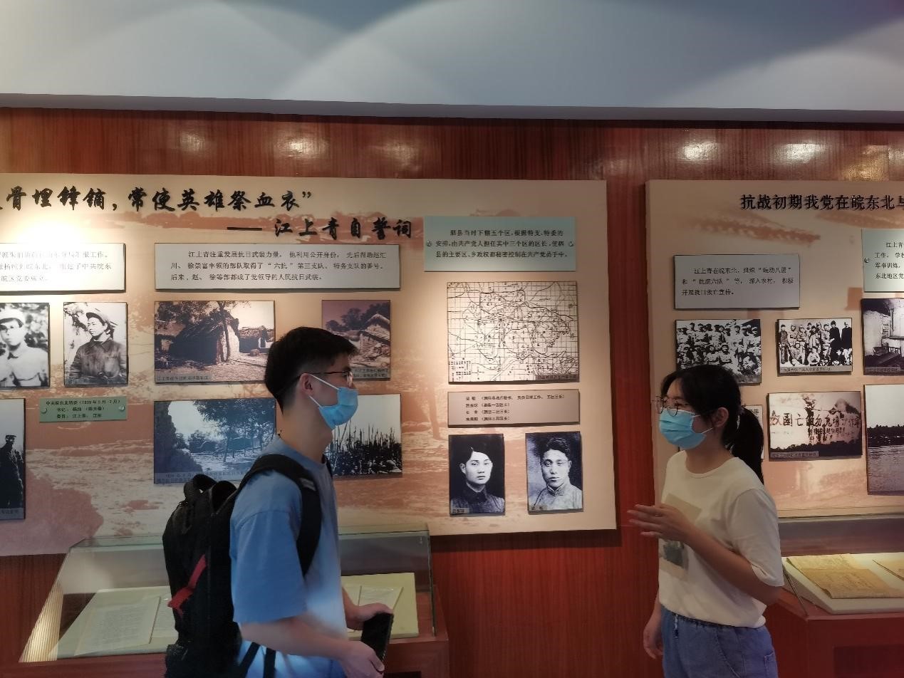 组建了由学生党员、团员组成的党史学习教育暑期社会实践团,返乡开展“寻访红色印记,传承红色基因”主题活动。7月24日,实践团成员在江苏省扬州市江上青烈士史料陈列馆正式开启红色研学之旅。