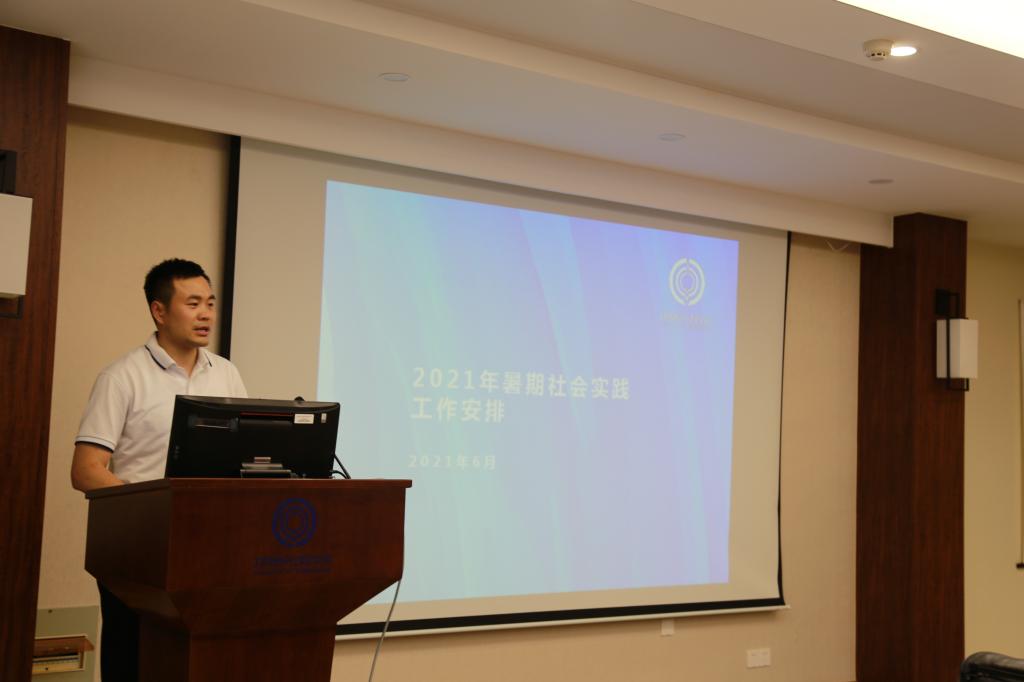 随后,吴垚代表学院团委为参会人员介绍了2021年暑期社会实践安排,并详细解读开展社会实践活动的方式方法及具体要求。同时,他围绕疫情防控、饮食出行、住宿生活等内容作安全教育,对重点安全事项再强调、再提醒。