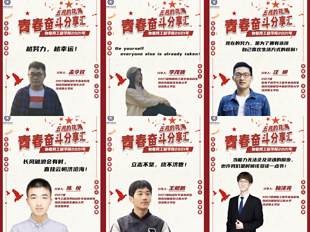 本届“五月的花海”青春奋斗分享汇活动紧密结合同学们的实际需求,充分调动了同学们考研深造的热情,激发了大家的求学信心,为同学们搭建了学习分享平台,也给学院团学工作打开了新的途径。相信通过越来越多优秀物联学子的引领,低年级的同学们能更好地明确奋斗目标,坚持不懈,奋发有为,为实现梦想而努力奋斗。