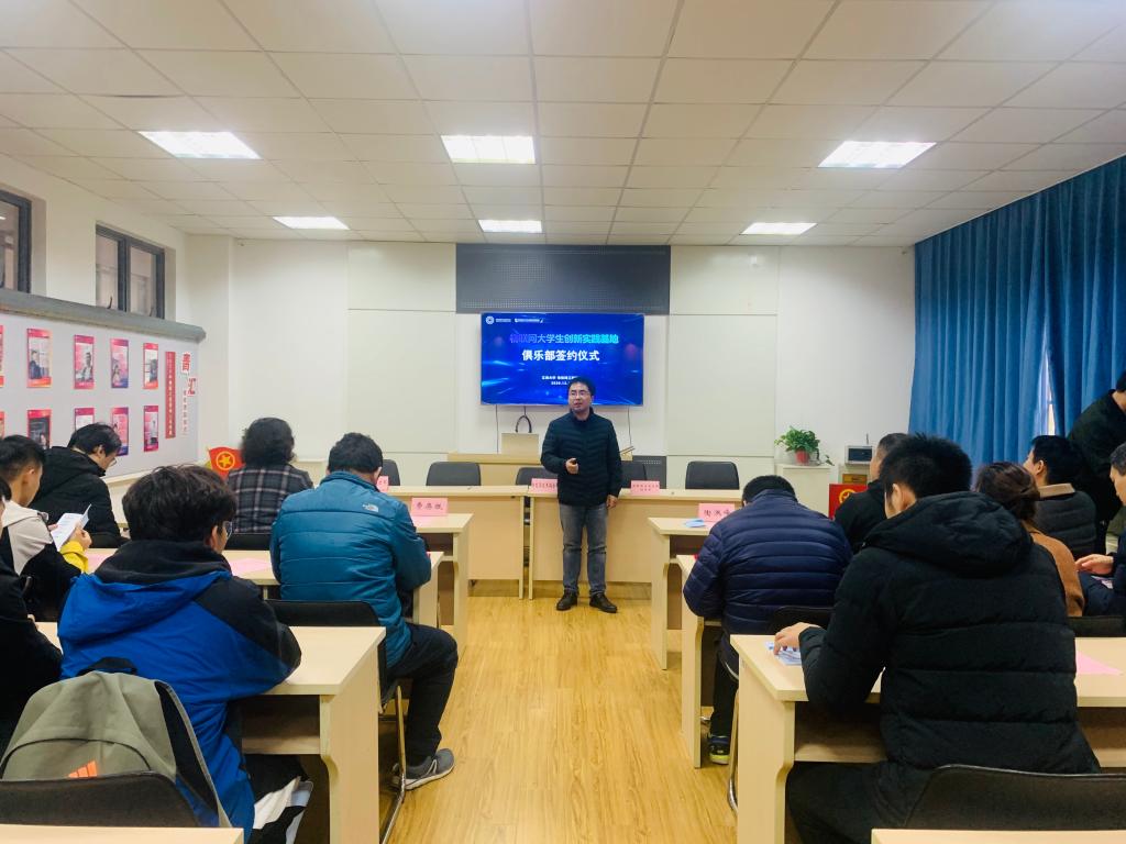 副院长陶洪峰、学院大创基地负责人费赓柢、分团委书记吴垚、辅导员屈跃宽及创新俱乐部责任指导老师、俱乐部学生代表出席本次签约仪式,仪式由费赓柢主持。