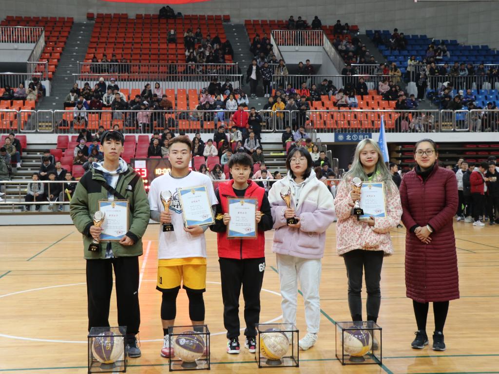 学生篮球赛比赛结果,并由龚宁、吴垚、戴平和孔丽丹为获奖学院及个人颁奖。
