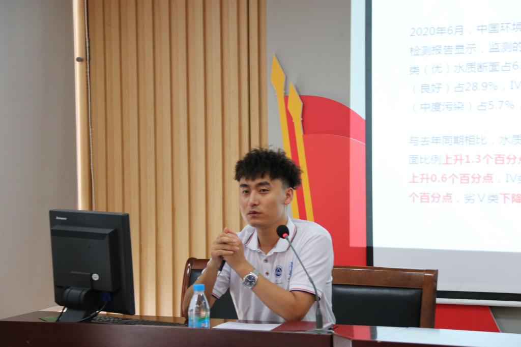 生态文明建设实践团的宋鹏同学向参会人员进行了有关生态文明建设水治理的宣讲,介绍了当前我国水环境污染和治理的现状,对比分析了当前河道治理技术,并详细介绍了该实践团队自主研发的数字化河道水质监测平台,通过生物-生态治理技术对水环境进行有效治理,并通过传感器实时监测水质指数,以大数据、云平台进行数据处理和智能分析,为河道治理提供全面精准、及时智能的信息参考和问题诊断。