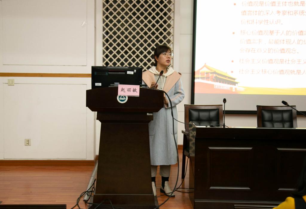 赵老师从我国社会主义核心价值观提出的时代背景讲起,核心价值观的提出是应对经济全球化挑战的时代选择,是我国经济发展方式实质性转变的客观要求,是中国特色社会主义新发展的内在规律,更是实现中华民族伟大复兴中国梦的历史使命。接着,赵老师又从构建社会主义核心价值观的现实困境、培育关键节点和主要途径三方面做了探讨。24字的核心价值观分别从国家、社会、公民的角度向我们展示了社会主义核心价值观的基本内容和内在联系;无论何种学历,多大年龄,社会主义核心价值观的培育与践行都必不可缺,每个人都应该将其内化于心,外化于行。最后,赵老师还通过分享身边的优秀校友的奋斗故事启发同学们践行社会主义核心价值观的方式方法有很多种,它贯穿于每个人的生活、学习、工作之中。
