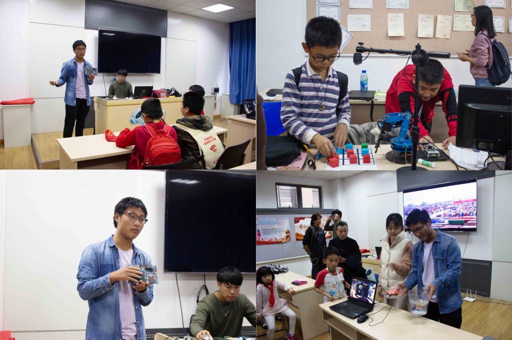 后,科协成员在学院D112为他们播放了介绍人工智能“阿尔法狗(Alpha-Go)”的视频,讲解了在物联网技术高速发展的时代背景下人工智能领域所取得的重大成就。小记者们个个聚精会神,当视频播放到Alpha-Go在围棋比赛中战胜了韩国顶尖棋手李世石时,他们不由得一同惊呼,赞叹人工智能科技的强大。