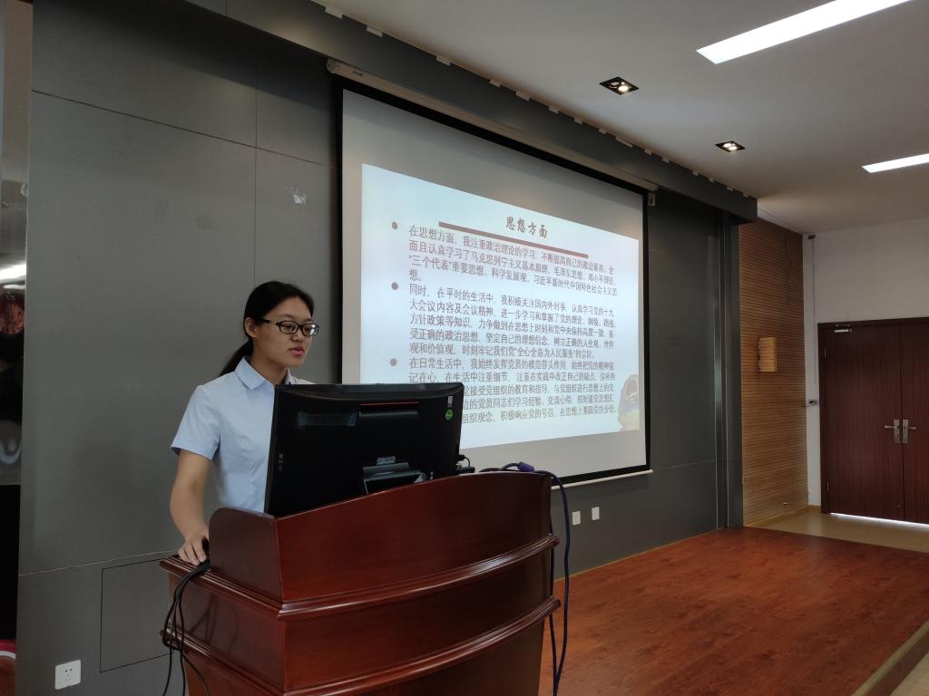 2019年上半年,学院共有41名同志预备期满,其中毕业班党员24名,学院特别安排了毕业生专场转正答辩会。答辩会包括学生汇报展示和提问两个环节。24名预备党员从自己在预备期中的思想、工作、学习以及不足之处等方面作了汇报。在思想上,预备党员始终以马克思主义武装自己,积极学习习近平总书记系列重要讲话,认真研读党章党史,不断提升自己的思想觉悟。在工作学习中,预备党员同志们孜孜不倦,用知识武装自己,为肩负中华民族伟大复兴夯实基础。对答辩老师的提出的涉及党的十九大精神、习近平总书记对青年人的希望等时政热点问题,他们都对答如流。答辩老师也根据学生学业成绩、宿舍卫生情况,综合素质等方面进行考量,从党性觉悟、理论学习以及先锋模范作用的发挥等方面进行了点评和鼓励。