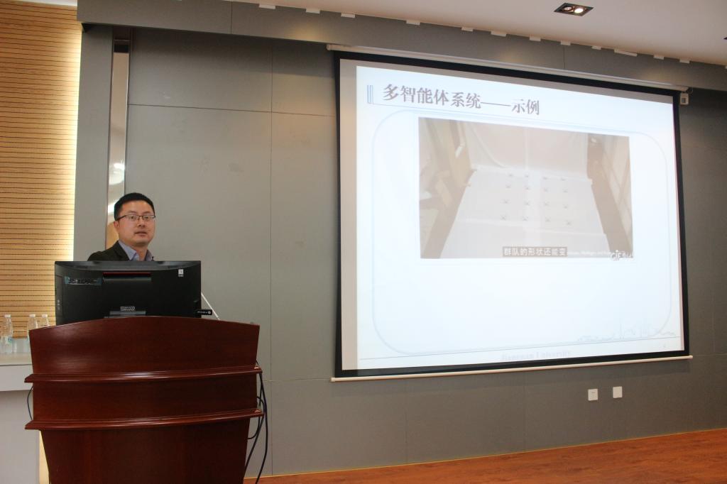教授、博士生导师刘成林作了“关于多智能体系统协调控制”的报告,他从生活中常见的示例讲起,循序渐进,向大家详细介绍了多智能体系统的协调控制问题,前来参会的同学收获颇丰。