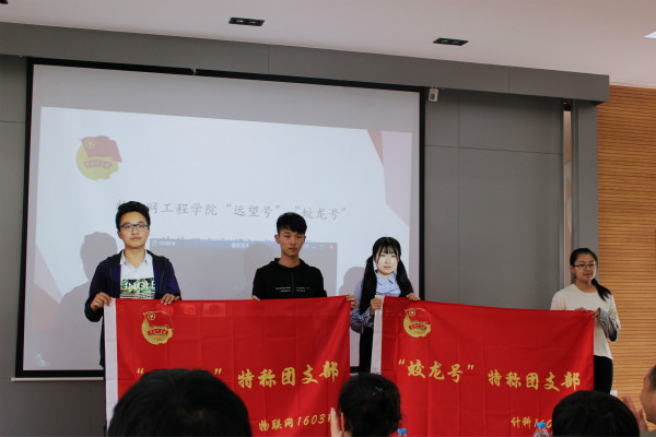 最后,物联网学院分团委书记胡娟为新一届的特称团支部提出了几点建议,她希望特称团支部的同学们能够珍惜自己作为特称团支部一员的机会,在日常的学习和生活中严于律己,勇于争先,再创特称团支部的辉煌。本次“蛟龙号”、“远望号”特称团支部旗帜交接仪式在师生们共同观看了学习视频《入团第一课》后圆满结束。此次的交接仪式以总结往届特称团支部的建设经验为统揽,进一步明确了新一届特称团支部的建设方向,物联网学院团支部的建设也必将在新一届特称团支部的带领下迈入新的阶段。