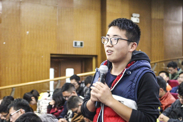 陶教授用热心恳切的语言,结合自己的见闻和身边的实例,给学生们上了一堂深刻的教育课,这不仅给予了学生们学习生活上的建议,也表达出了他对学生们的殷切希望。陶教授提出,大学中除了授课教师之外还应有四个老师:图书馆、实验室、社会及工厂,同学们要为民族振兴和国家发展而学习。现场的400多名物联学子都被陶教授的讲话所感染,积极思考,在交流提问环节上,同学们结合自身学习生活踊跃提出问题,陶教授也为他们做出了详细的解答。