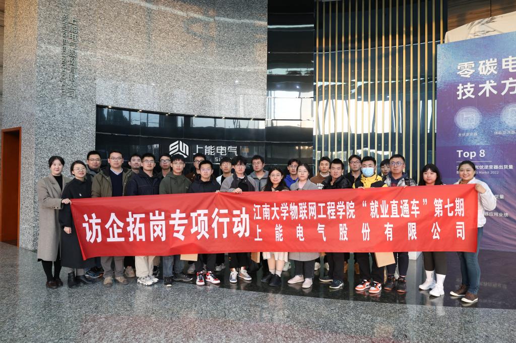 学工办主任兼分团委书记洪筱,辅导员王雪冰、沈滔,带领2024届毕业生代表前往上能电气股份有限公司开展“访企拓岗促就业”专项行动。上能电气股份有限公司人力行政总监刘德龙、解决方案部副总经理王莉、中试部总经理吴亚平、HR招聘主管俞海霞、HR培训主管苏寒萼等出席本次活动。