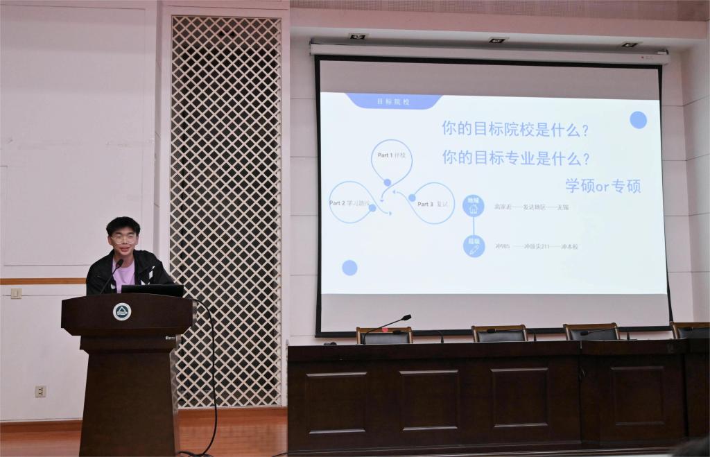 D328会议室举办。2020级毕业班优秀学子李世骏、王子木受邀为2021级本科生分享考研心得,200余名同学报名参与。活动由学风扎口辅导员谢幸福主持。