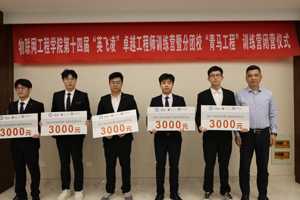 郁海金、张华分别宣读2023年度英飞凌科技奖学金研究生、本科生获奖名单并为其颁奖。2023级硕士研究生霍雷霆作为英飞凌奖学金获奖学生代表发言,他分享了自己在专业学习、学科竞赛、志愿服务等方面的经历和感悟,鼓励全体营员要眼里有方向、心中有梦想、交下有力量。会上,学院向英飞凌科技(无锡)有限公司颁发了捐赠证书。