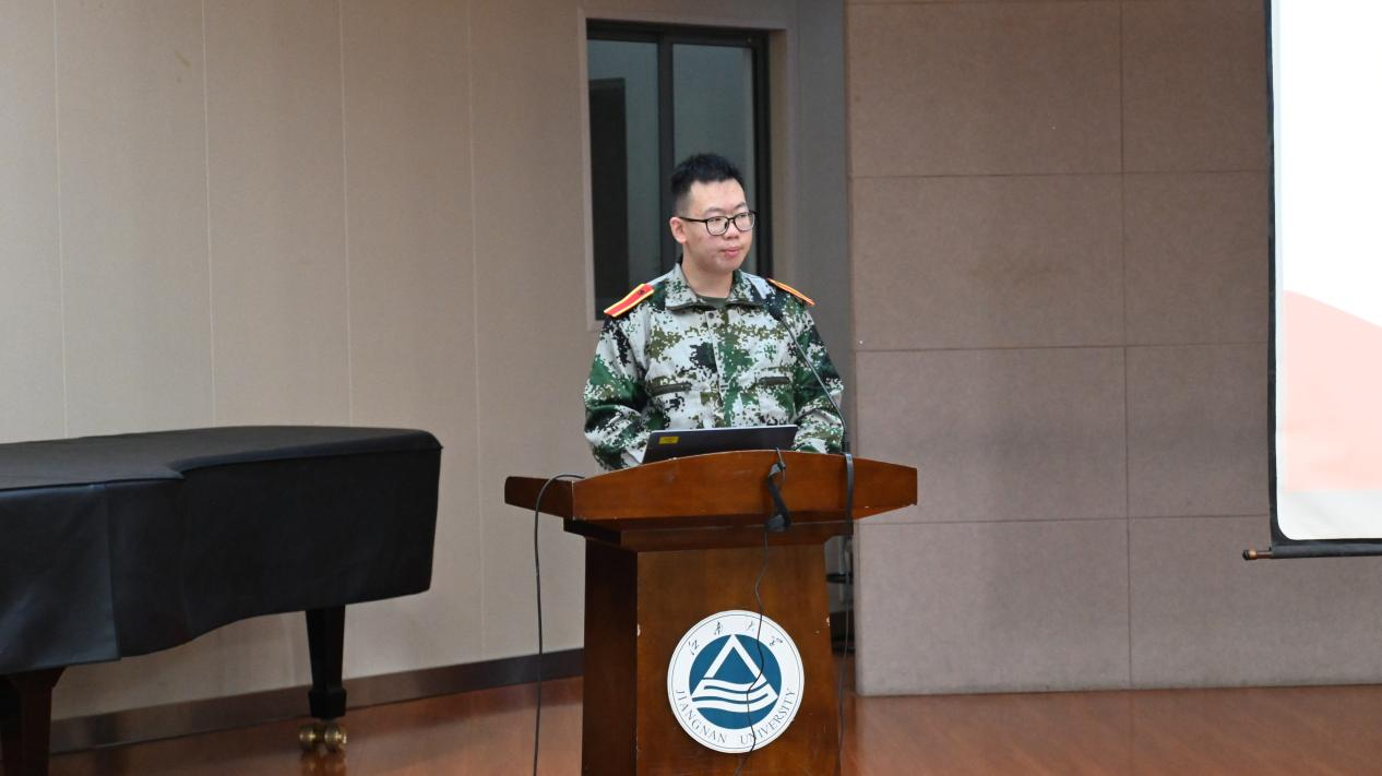 沈滔从军训背景、军训目的、军训时间、日程安排以及安全问题等方面介绍了此次军训的整体安排,让新生们对军训期间的训练任务有了更清晰的了解,并表示辅导员将与全体同学同心同行,共同完成本次军训任务。