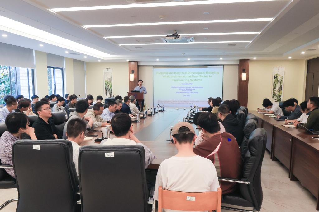 B222作了题为《工程中多维时间序列的概率降维建模》的学术报告,在场师生受益匪浅。讲座结束后,现场师生与秦泗钊教授展开了深入的交流讨论,进一步促进了学术思想的碰撞与融合。