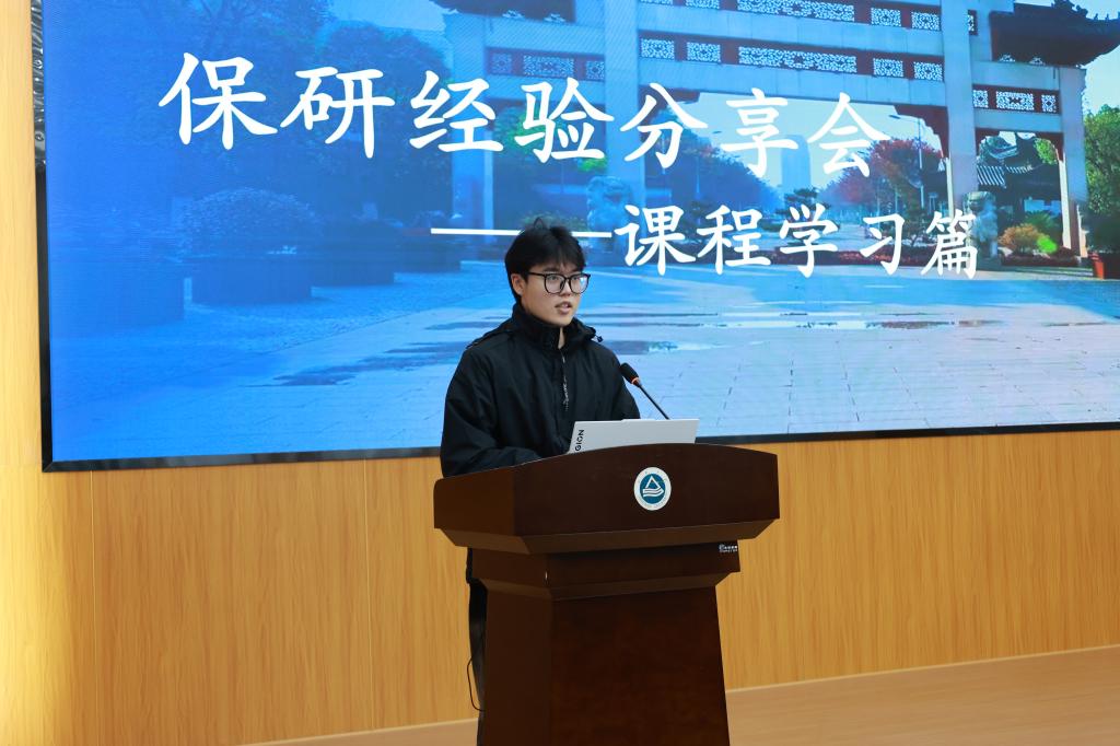 武扬侧重于从专业成绩提升方面分享经验。他指出,扎实的专业课程学习有助于学术研究或职业发展知识储备,学习要善于总结归纳,将知识点融会贯通,形成知识体系;要积极沟通交流,及时获取各方力量的指导和建议,不断完善内容,提高课业质量;要勇于创新,有所突破,让专业能力在实践中得到锻炼和提高。