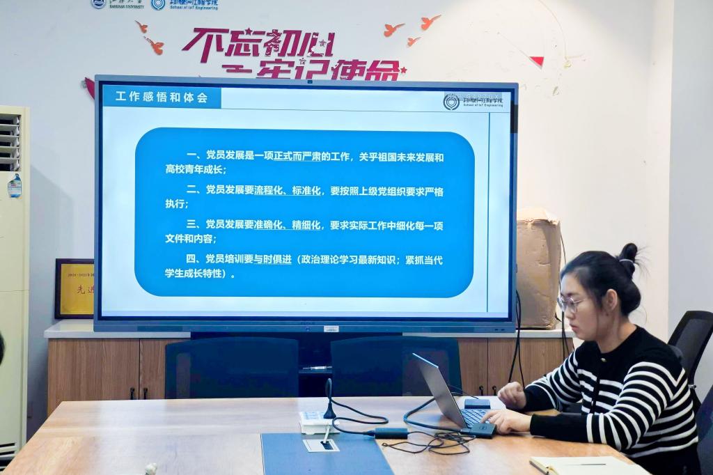 李灿围绕学生党员发展作分享,她从入党积极分子选拔培养到预备党员接收与转正,针对每一个环节都进行了深入解读,并结合实际工作中的典型案例,分享了在党员发展过程中的经验与教训。她指出,高质量党员发展工作是加强学院基层党组织建设的重要内容,必须要正确把好党员发展过程关和素质关。一方面,党员发展具有严格的过程程序,在工作中必须严控和细化各个环节,明晰各个步骤注意事项和关键要点,确保入党程序规范、材料准确,从源头上切实提升党员发展质量,把好党员发展“过程关”。另一方面,在教育培训环节,做到内容紧跟时代步伐,不断吸纳新思想、新理念,深刻理解并准确把握新时代青年的特性与需求,以增强党员教育的时代感,着力切实把好党员发展“素质关”,做到为党选好人,育好才。