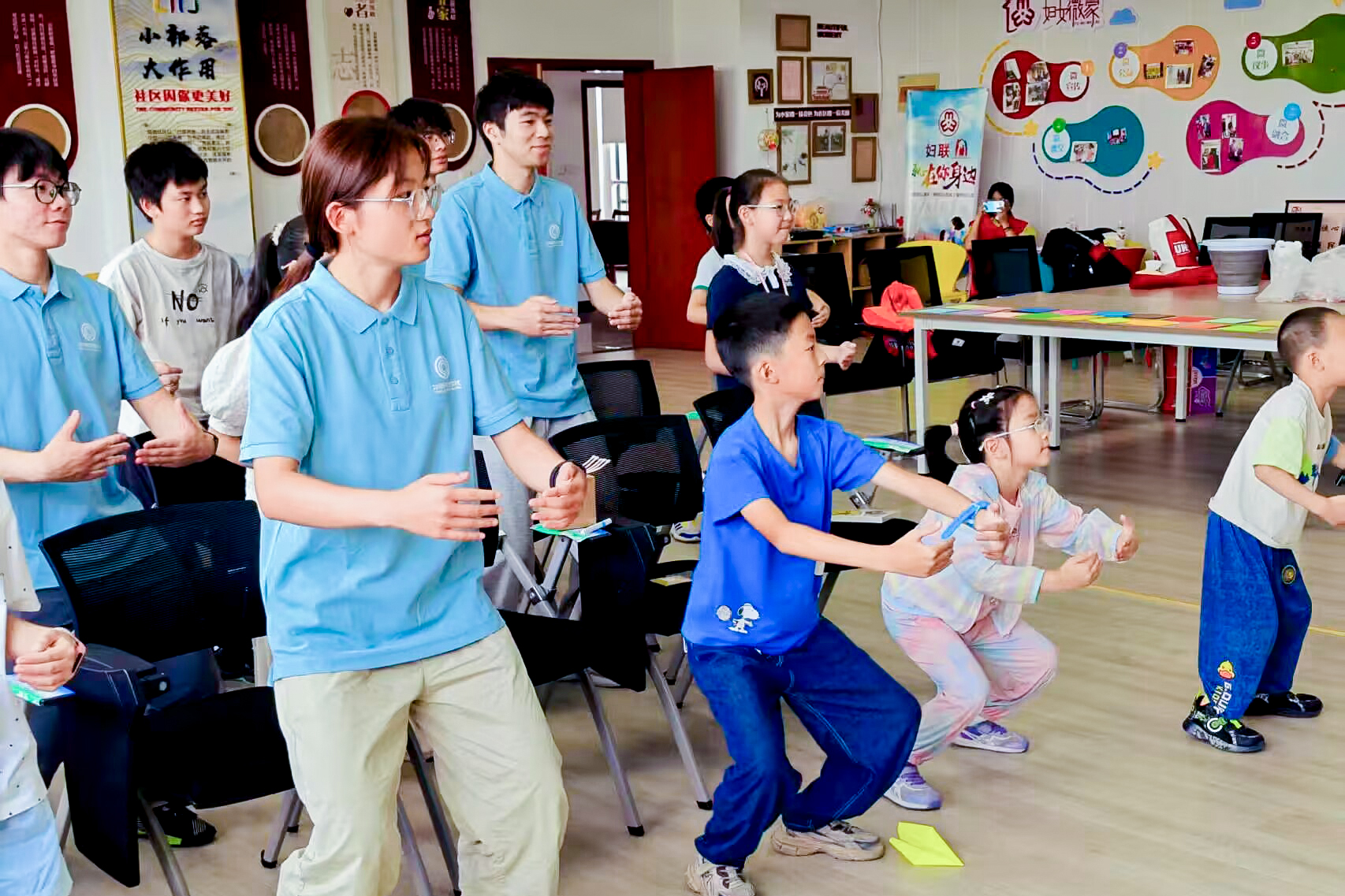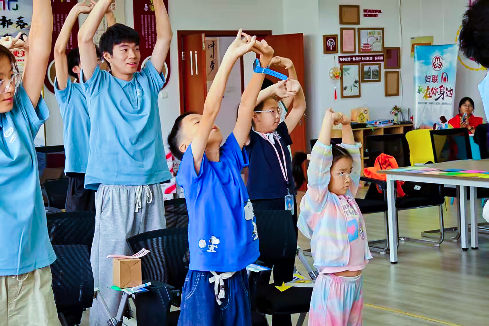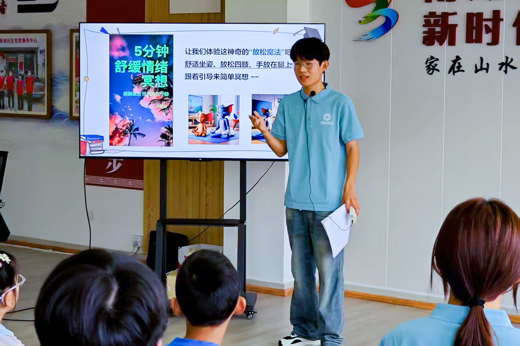 习技巧·调身心:掌握实用方法。实践团还现场教授多种实用方法助力孩子们调节情绪。盒式呼吸法被喻为情绪 “调节阀”,以吸气4秒积蓄能量、呼气4秒释放压力的循环,帮助孩子快速缓解焦虑,重拾专注与平静。5分钟舒缓冥想引导孩子调整坐姿、放松肢体,在轻柔指引下闭目进入宁静世界,于呼吸间放下纷扰。八段锦教学结合图示讲解动作要领与身心关联,强调 “形神共养”,成员与孩子同频律动,让压力随肢体舒展自然释放。蝴蝶拍技巧拆解 “心灵拥抱术”,通过轻拍双臂模拟安抚,助焦虑或缺乏安全感的孩子恢复心理稳态。这些方法将专业调节转化为易操作的 “情绪魔法”,助力孩子疏解压力、收获身心愉悦。