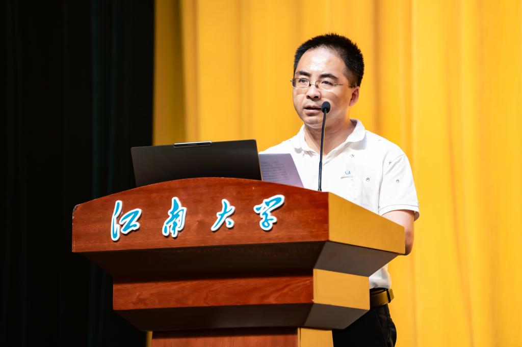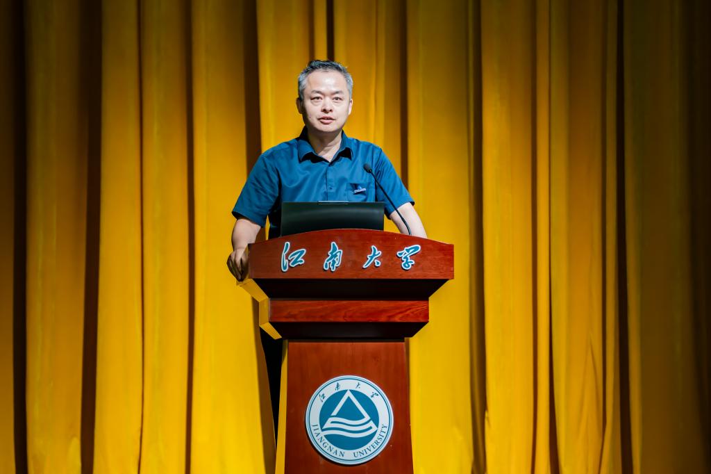典礼最后,优秀校友李新以“以热爱铸就专业,以创新引领未来”为主题,为新生带来精彩分享。他深情回顾了自己从江大学子到企业家的奋斗历程,强调“热爱”是坚守的起点,“永争第一”是超越的动力,而“健全人格”是成就事业的基石,并分享了在工业自动化领域坚守自主创新的经验与成果。他寄语新生要珍惜大学时光,打好专业基础,勇于拼搏与探索,在家国情怀的指引下不断提升自我,把握时代机遇。