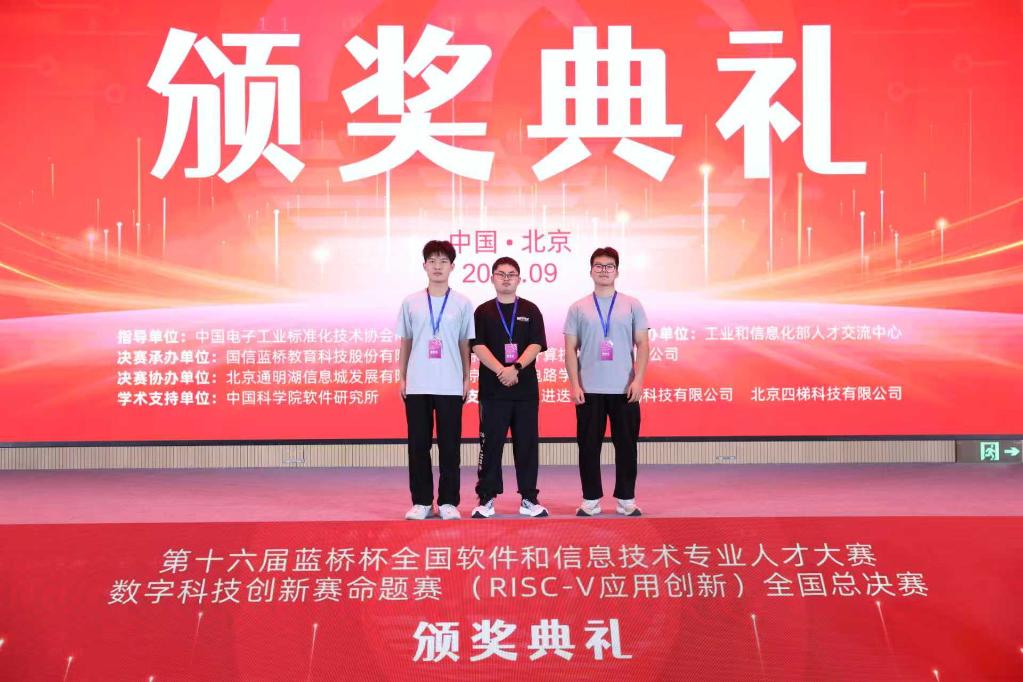 近日,由工业和信息化部人才交流中心主办、中国电子工业标准化技术协会RISC-V工作委员会承办的第十六届“蓝桥杯”数字科技创新赛命题赛(AIoT场景应用)全国总决赛在北京圆满落幕。在中文无码 刘相、马浩老师指导下,由李佳澳、付云鹏、刘康硕三位本科生组成的团队,凭借面向工业互联网智能制造场景研发的作品《二维码导航自动顶托AGV小车》,荣获全国一等奖,为学校在AIoT应用创新领域再添佳绩!