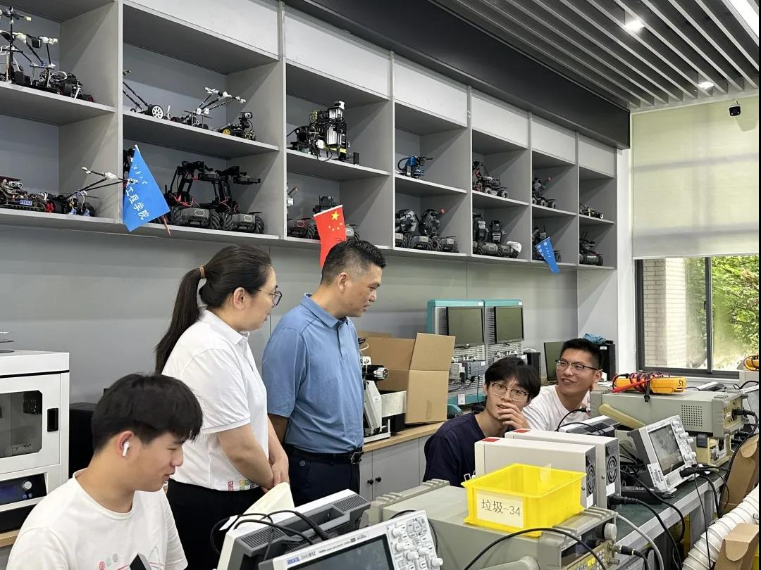 “博世杯”电子设计竞赛,以赛代练,以赛促训,面向全校择优选拔种子队全力备战2024年江苏省电子设计竞赛及2025年全国大学生电子设计竞赛;5月份,依托电子设计俱乐部、智能车俱乐部、物联网创新应用俱乐部等,组建了以朱凯元、吴定会、冯伟、张伟、孙顺远、肖永松、毕恺韬、艾建等为代表的优秀指导教师团队,对种子队选手进行为期三个月的基础训练和专项培训;暑假期间,师生们攻坚克难,不畏高温酷暑选择留校备赛,学院在确保元器件和材料充足供应的同时,关心关爱留校学生,学院党委书记张华带队走访慰问,并定期发放物资和防暑降温用品,全力做好各项保障工作。