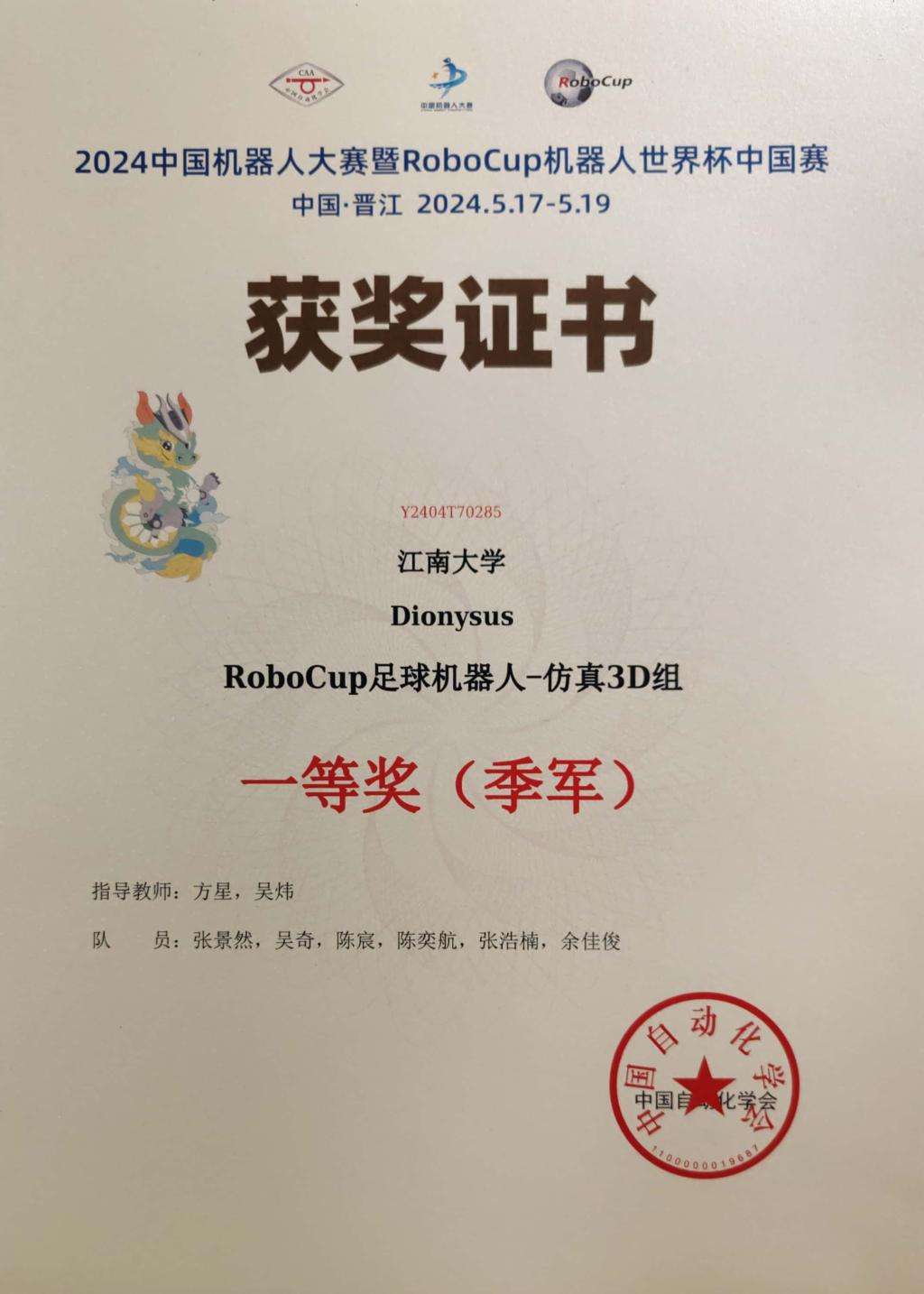 近日,2024中国机器人大赛暨RoboCup机器人世界杯中国赛在福建晋江市成功举办。中文无码 机器人俱乐部仿真3D足球队经过连续3天多轮激烈角逐,最终斩获全国一等奖(全国季军),打破了我校在该项赛事的历史最好成绩。