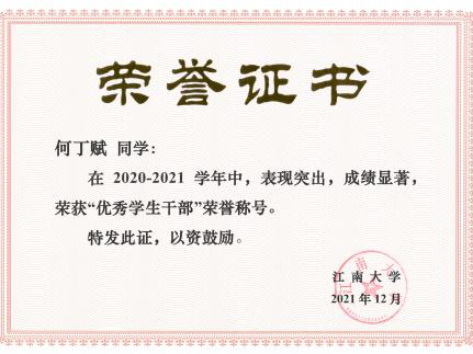 在书卷里精耕细作,为学之路上,他因为努力所以优秀。勤恳为学,是何丁赋的特点之一,更是他取得一系列瞩目成绩的制胜法宝。对待学习的态度,他是无比真诚的,初入大学的他并未能够很快明确自己的发展之路,但心中总有一团属于时代青年的奋进之火,时刻催促着他再努力一些!这为他以后锚准自身定位埋下了伏笔。在他看来,自己的万丈志向高楼需要无比强大坚实的基础去承载,更需要精心打磨的“砖瓦”去铺设。带着这样端正的态度,他开始了自己“早迎晨曦去,披夜幕而归”的规律学习日常。课前课后科学的学习方法,令他面对考试从容不迫、面对科创实践中的难点心有静气,碎片化的时间被他合理调整利用,常人一带而过的细碎知识他要认真咀嚼,专业问题他会广泛查阅资料刨根问底,长期的科学式宽领域学习法,让他的知识版图远比一般人要详细和广袤。出色的学习成绩、端正的学习态度、夸张的学习效率很快引起了同学们的侧目,“何老师”这一称谓是对他学习委员工作的肯定,更是他连任四年这项工作的底气和原因所在!他乐于解答同学们的“疑问三连”,个人的“学习魅力”和“学者特质”更是影响着身边的同学,整体带动了班级的学习之风向好向上发展。最终,他所在的班级获评江苏省“先进班集体”、中文无码