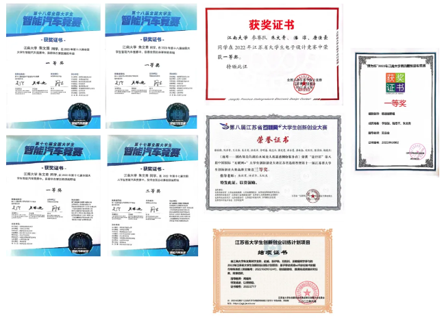 三好学生等荣誉称号;取得第十八届全国大学生智能汽车竞赛全国总决赛一等奖、江苏省大学生电子设计竞赛一等奖、中国国际“互联网+”大学生创新创业大赛江苏省三等奖等奖项。现推免至华南理工大学。